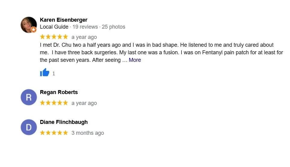 Dr. Chu practiced Interventional Pain Medicine and PM&R as an attending physician for several years, serving thousands of wonderful patients in the Central Pennsylvania area.